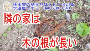 今回の現場は、坂戸市内の一戸建て住宅。 排水管の詰まりの原因が、隣家の植木から伸びてきた根っこでした。 双方、揃って立ち合いの元、排水管を見てみると、ながーい根っこが・・・。 最近、こういう事例が増えているかも。 どうぞ […]