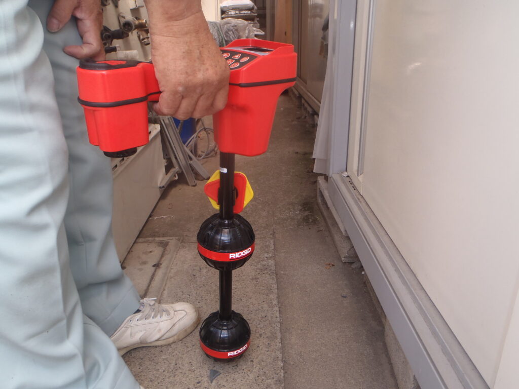 建物の構造上の埋設管、増築や植栽の都合で地中深く埋まってしまった配管や桝をカメラとセンサーを使って探知します。